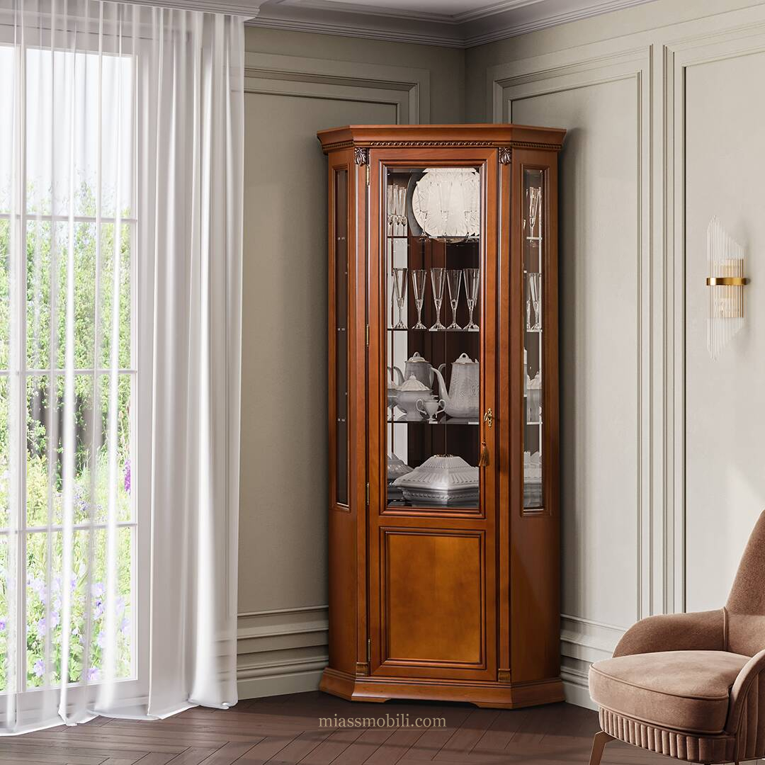 Шкаф для посуды угловой Лоренцо вишня Lorenzo вишня купить в Миассе