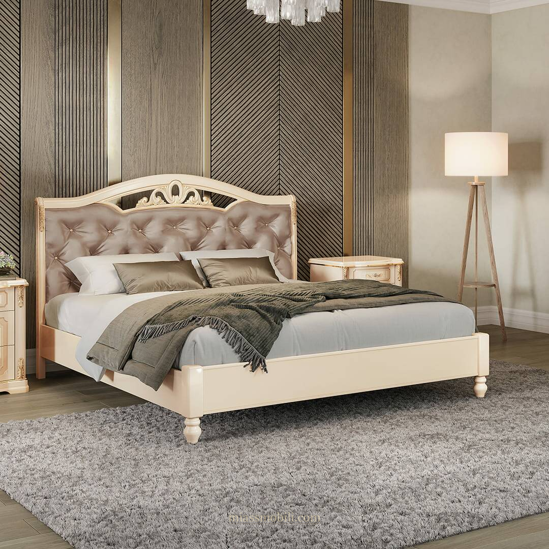 Кровать двойная с кутанной головной и без ножной спинки Floriana беж купить в Миассе