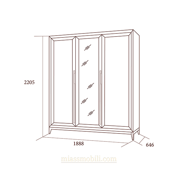 Шкаф 3-х дв .для платья и белья Modena дуб сатин с зеркалом дуб Сатин Modena дуб Сатин купить в Миассе