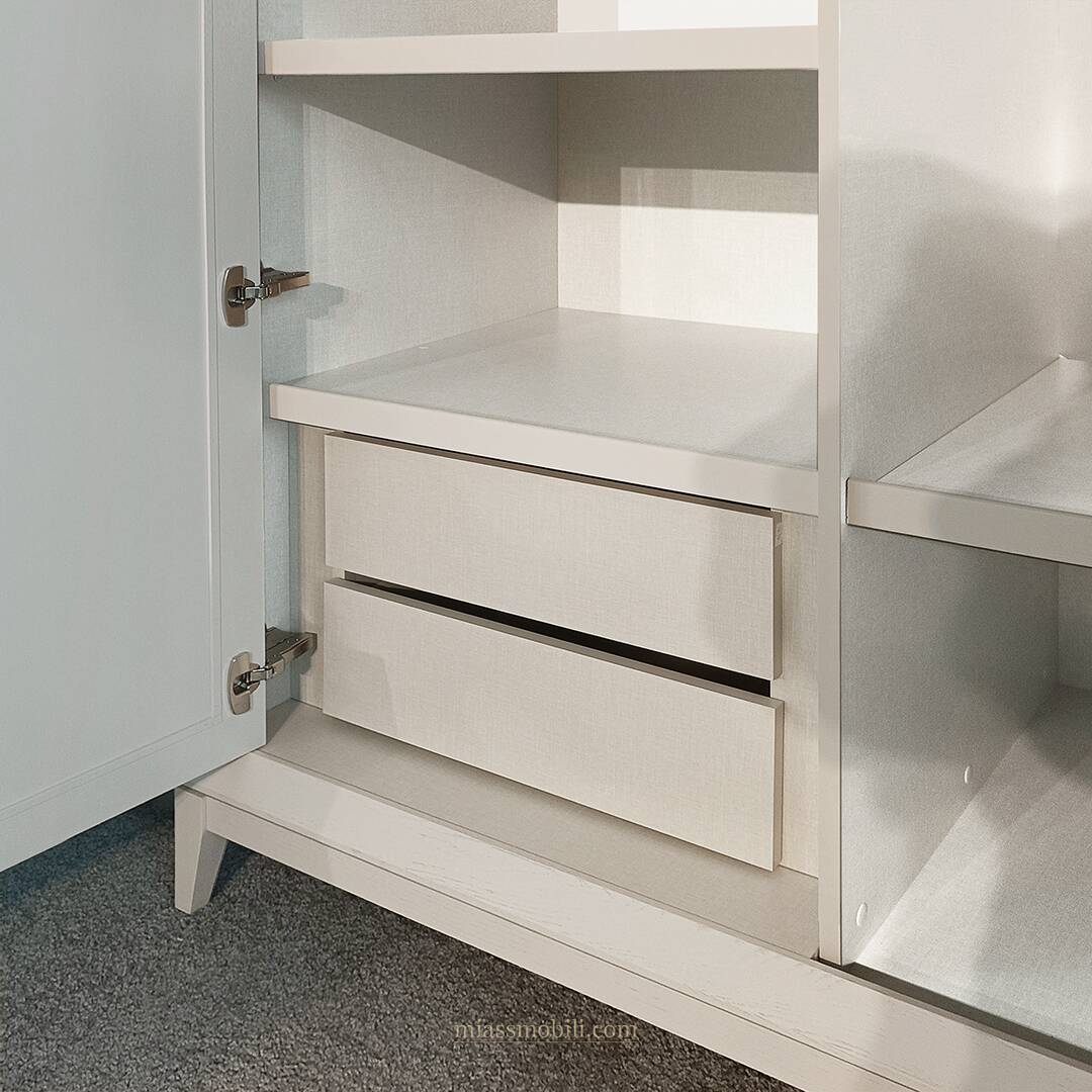 Ящики снабжены направляющими с системой доводки, что обеспечивает их бесшумное и плавное движение