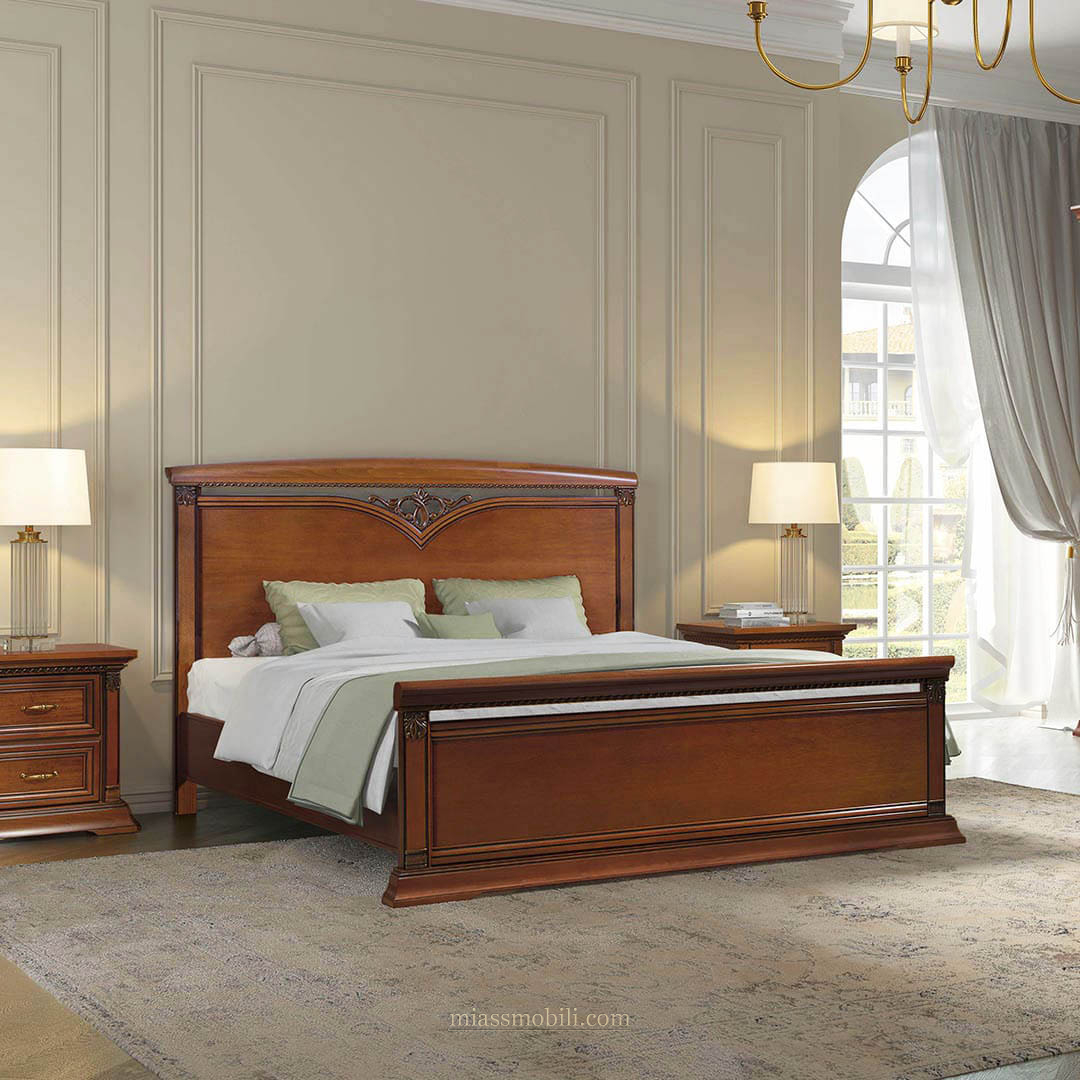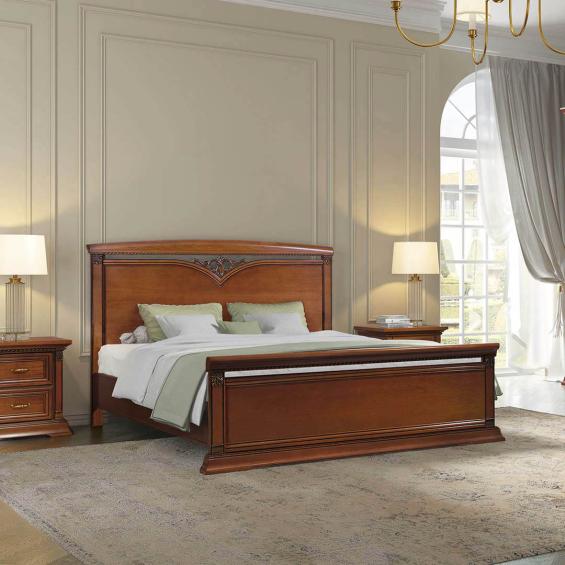 Кровать двойная Lorenzo вишня с ножной спинкой. Кровати купить в Миассе