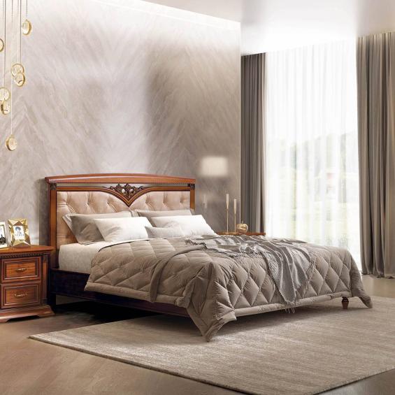 Кровать двойная Lorenzo вишня с кутаной головной и без ножной спинки Кровати купить в Миассе
